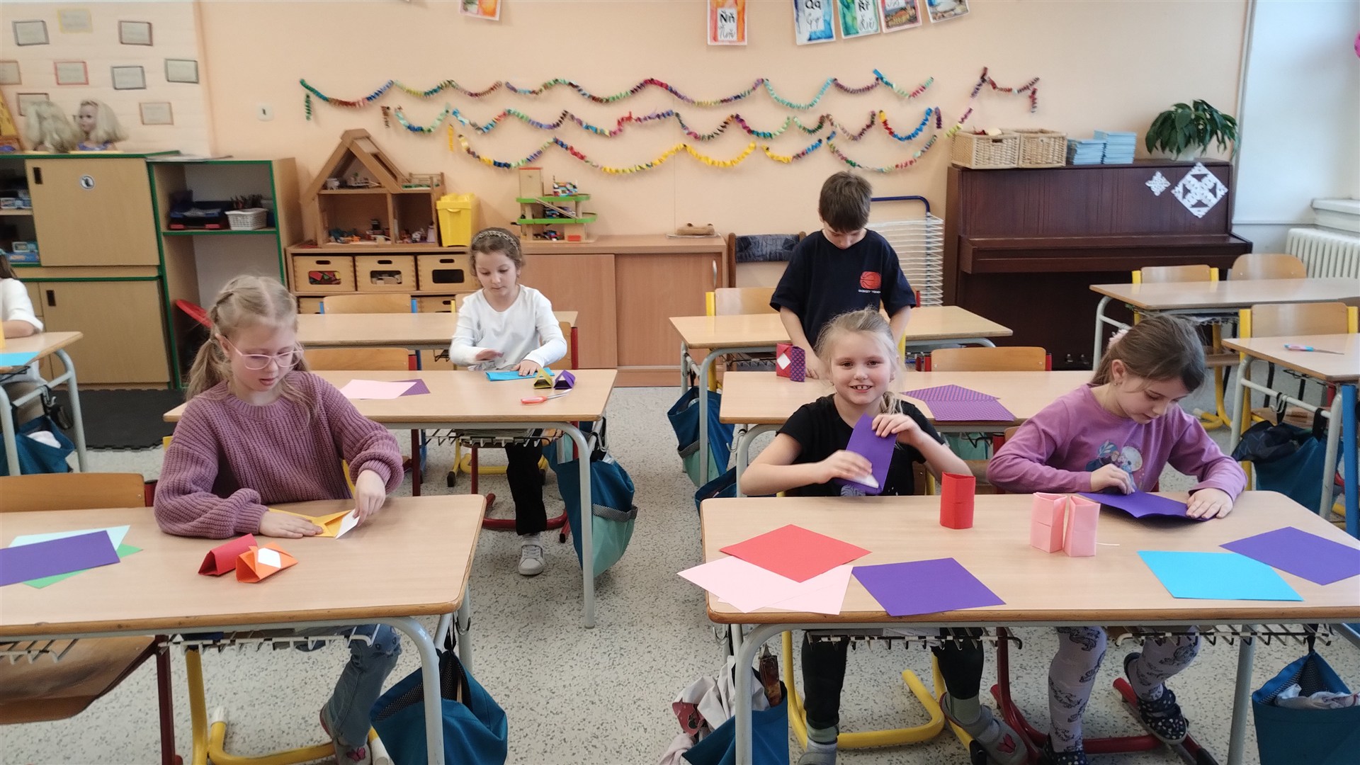 Tentokrát jsme se během Šikulek věnovali trpělivosti, pečlivosti a přesnému skládání. Vystačili jsme si s papírem, lepidlem a nůžkami a vytvořili si krásné kelímky na tužky a pastelky.