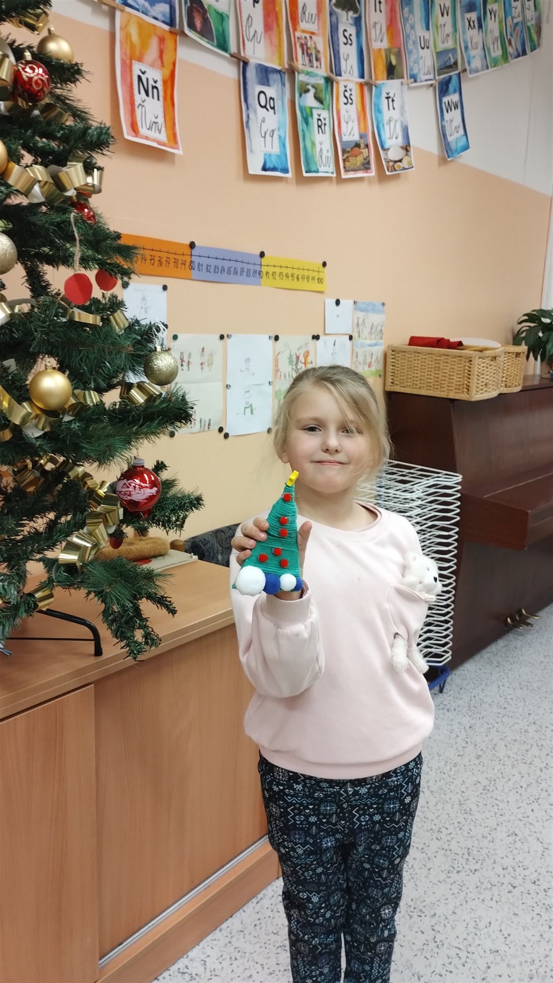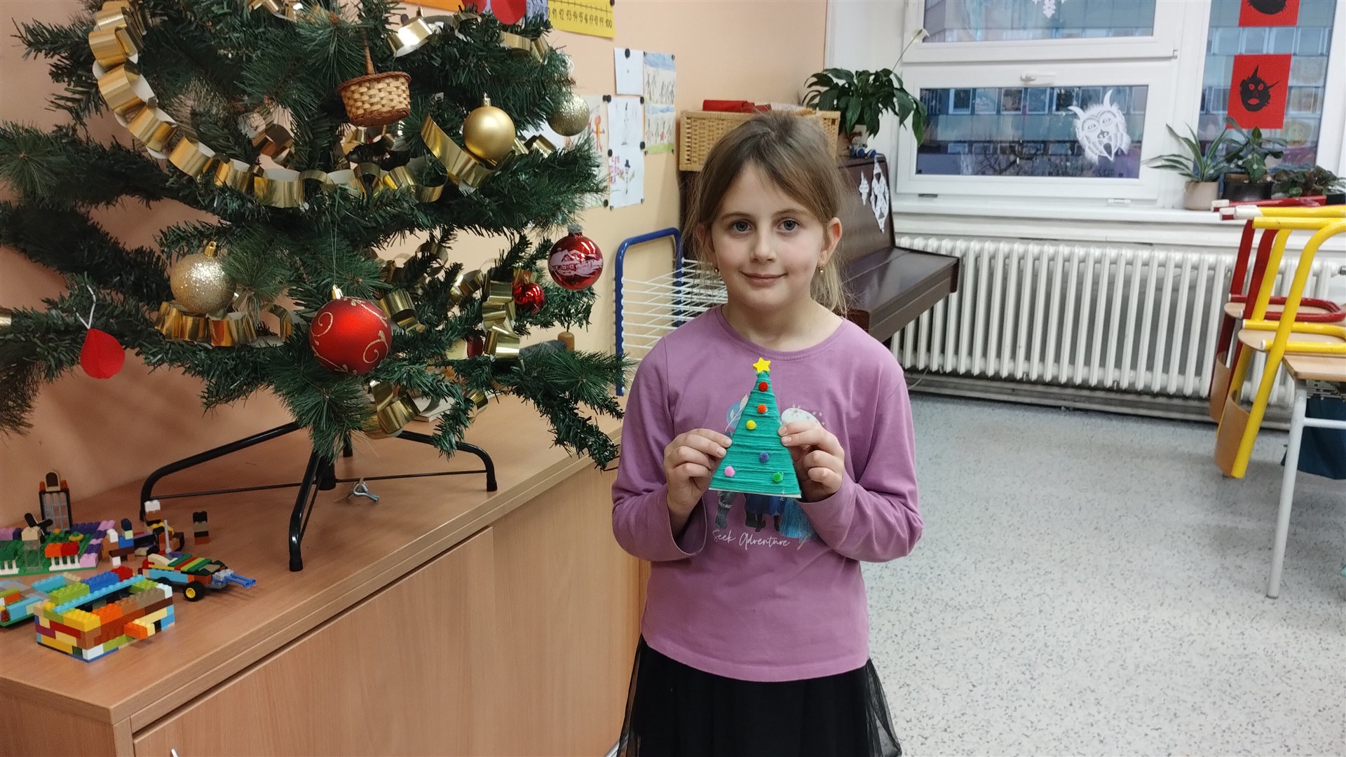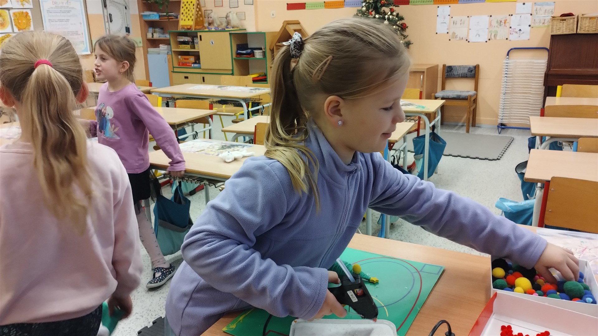 Během posledního předvánočního kroužku Šikulek jsme si vyrobili za pomoci vlny a barevných bambulek jednoduché vánoční stromečky.