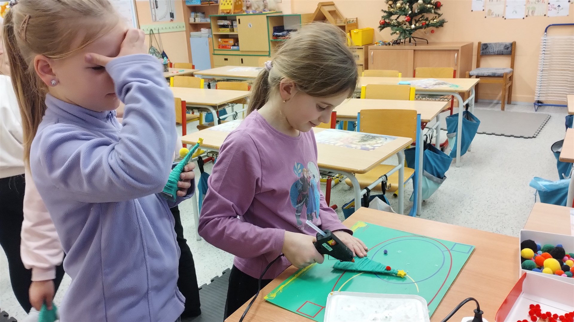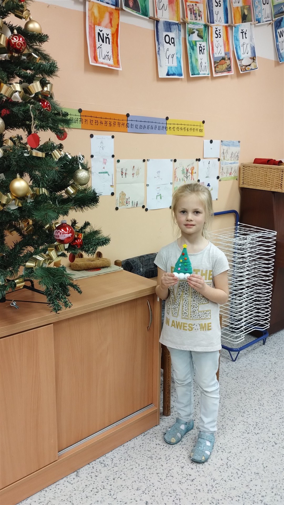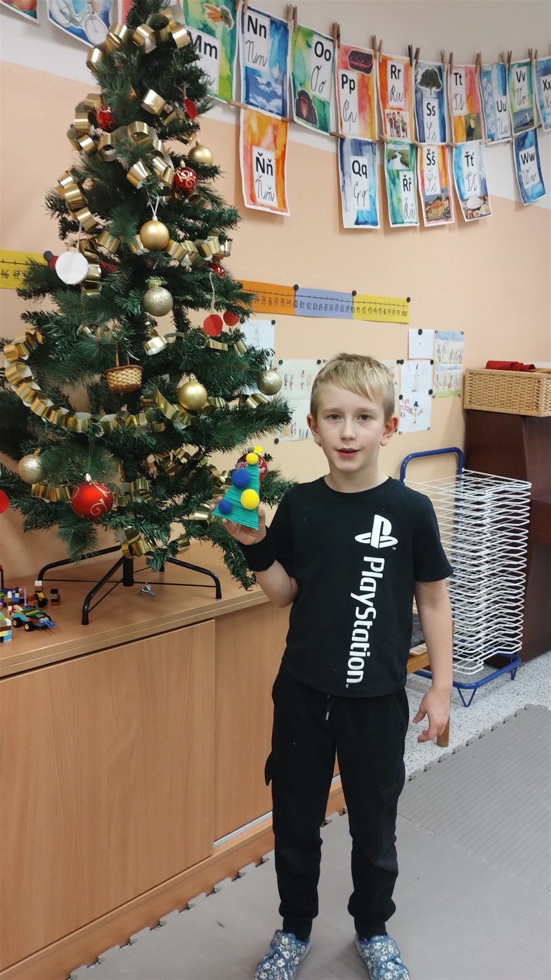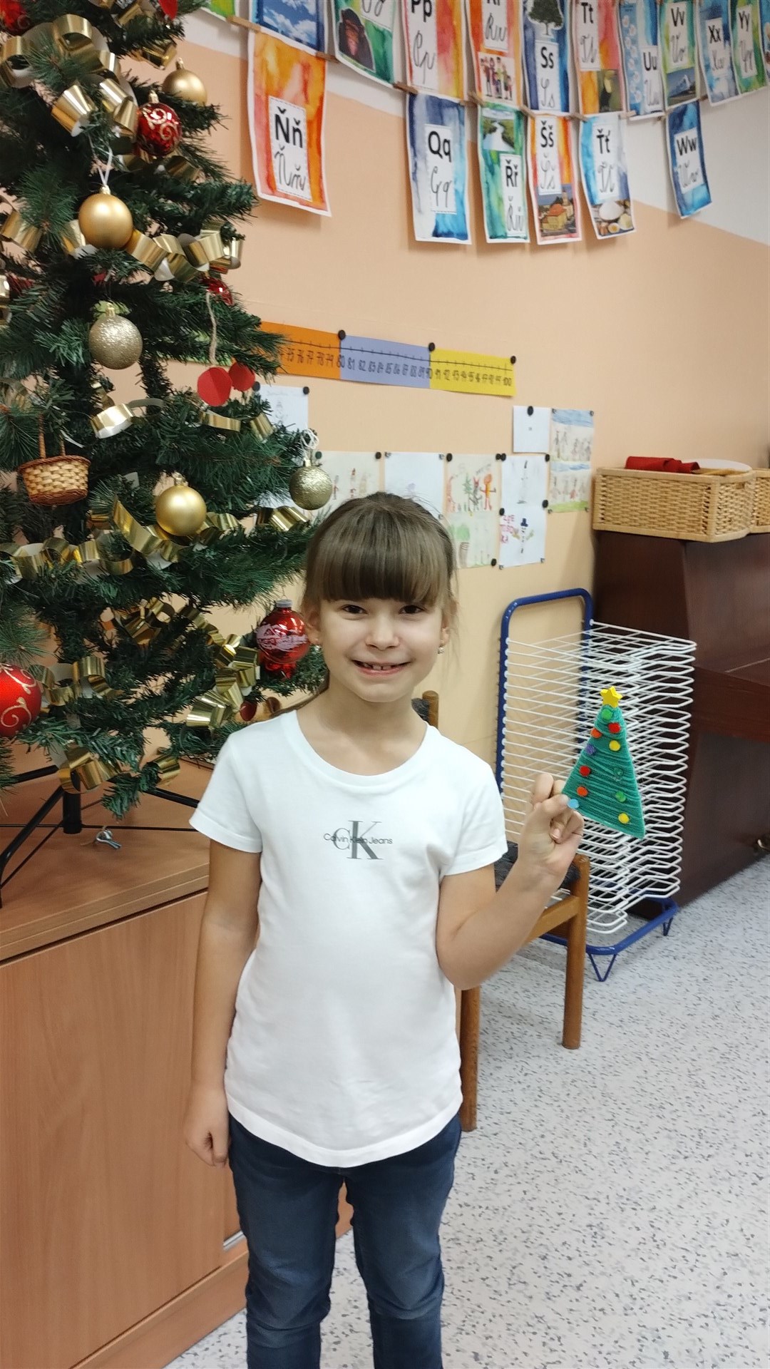 Během posledního předvánočního kroužku Šikulek jsme si vyrobili za pomoci vlny a barevných bambulek jednoduché vánoční stromečky.