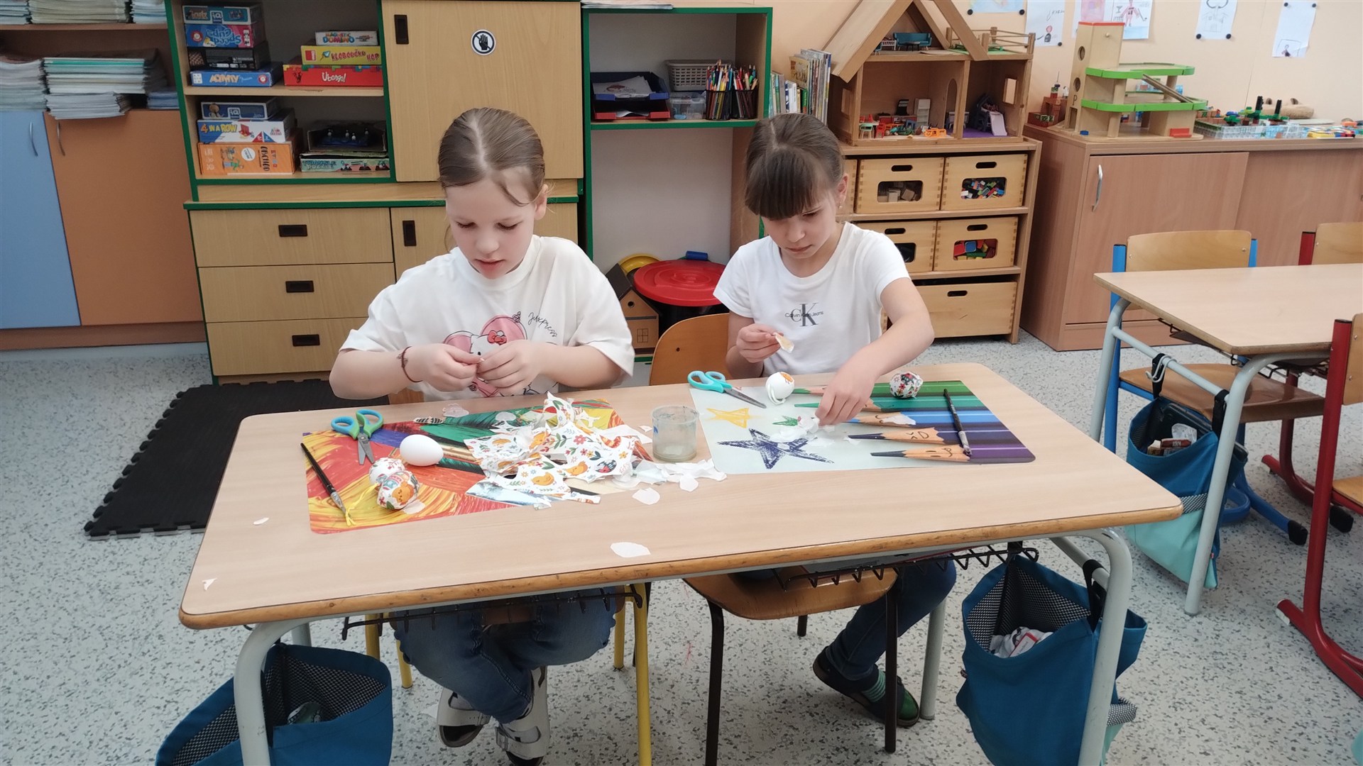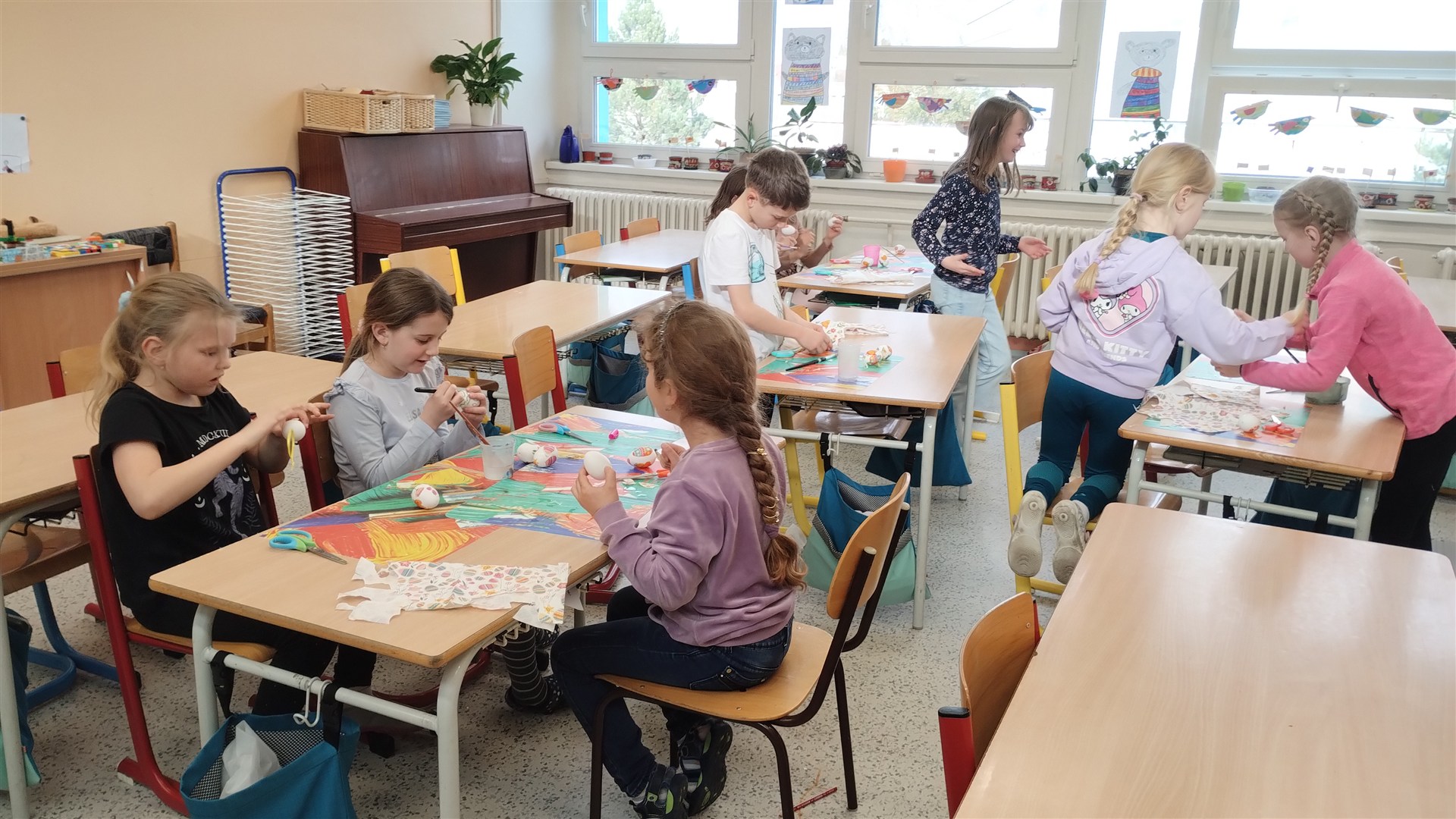 Poslední kroužek Šikulky před velikonočními svátky se nesl ve znamení zdobení kraslic. Tentokrát jsme zdobili ubrouskovou technikou.